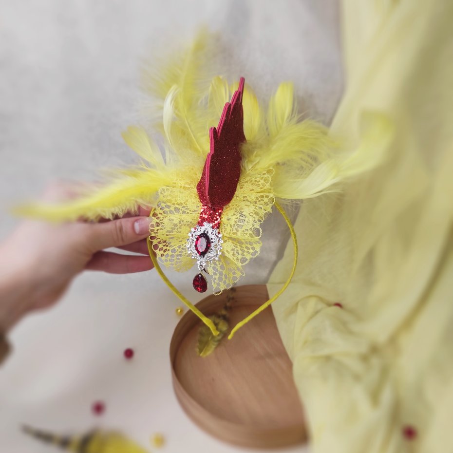 Ręcznie wykonana opaska z motywem kurczaczka lub kogucika – doskonały dodatek do dziecięcego kostiumu karnawałowego, świątecznego lub wielkanocnego. Idealna na występy, sesje zdjęciowe i zabawy w przedszkolu.