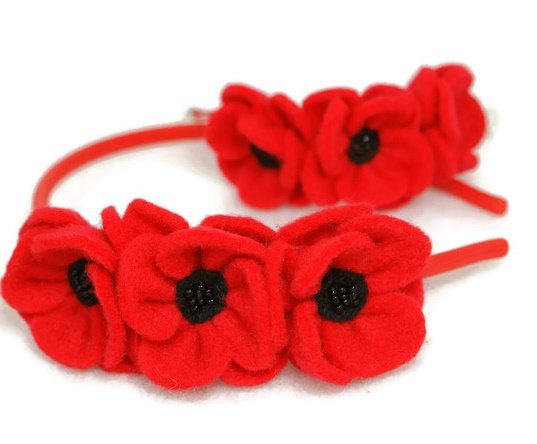 Opaska i bransoletka z kwiatkami wykonanymi z filcu,