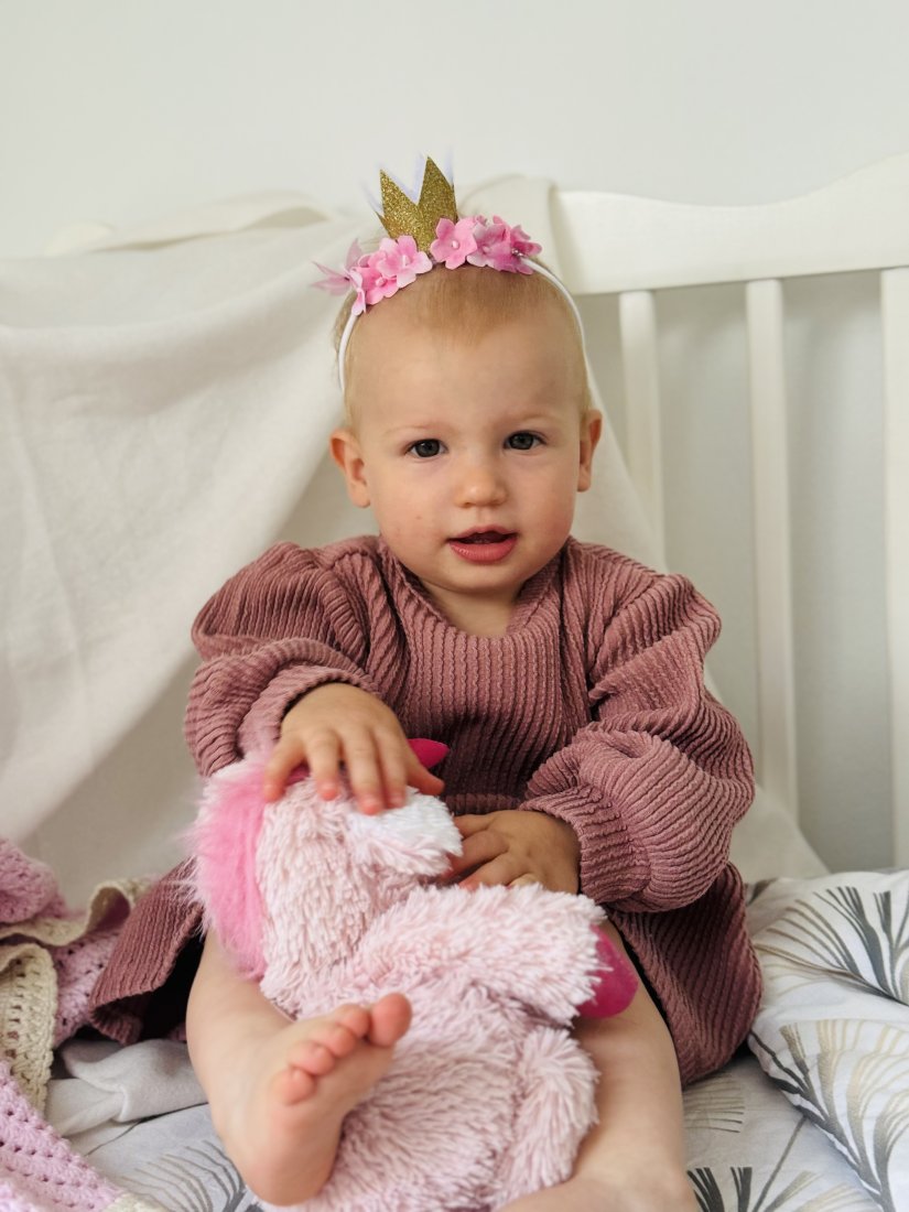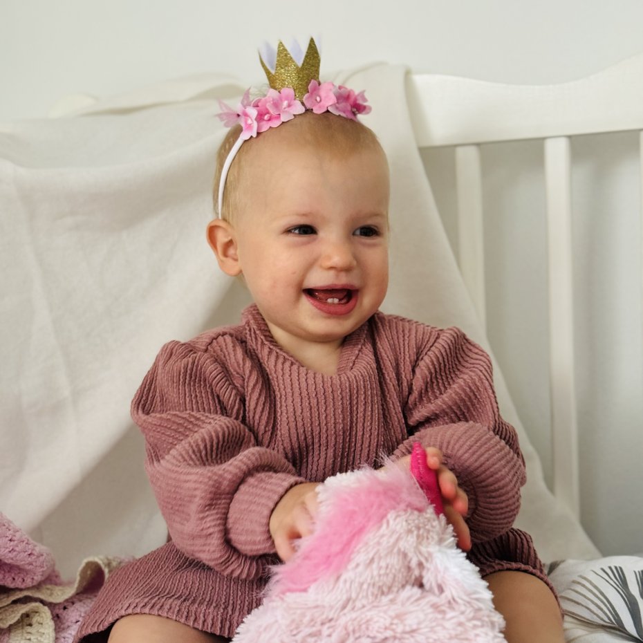 ???? Idealne wymiary korony i kwiatów – efektownie wygląda, ale nie przeszkadza maluszce.