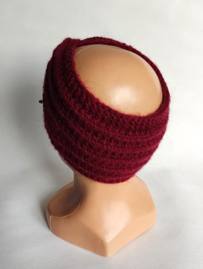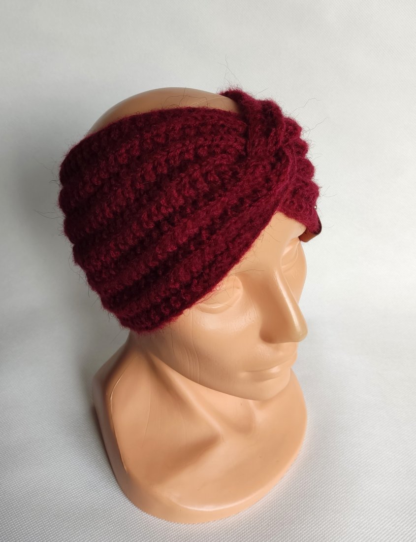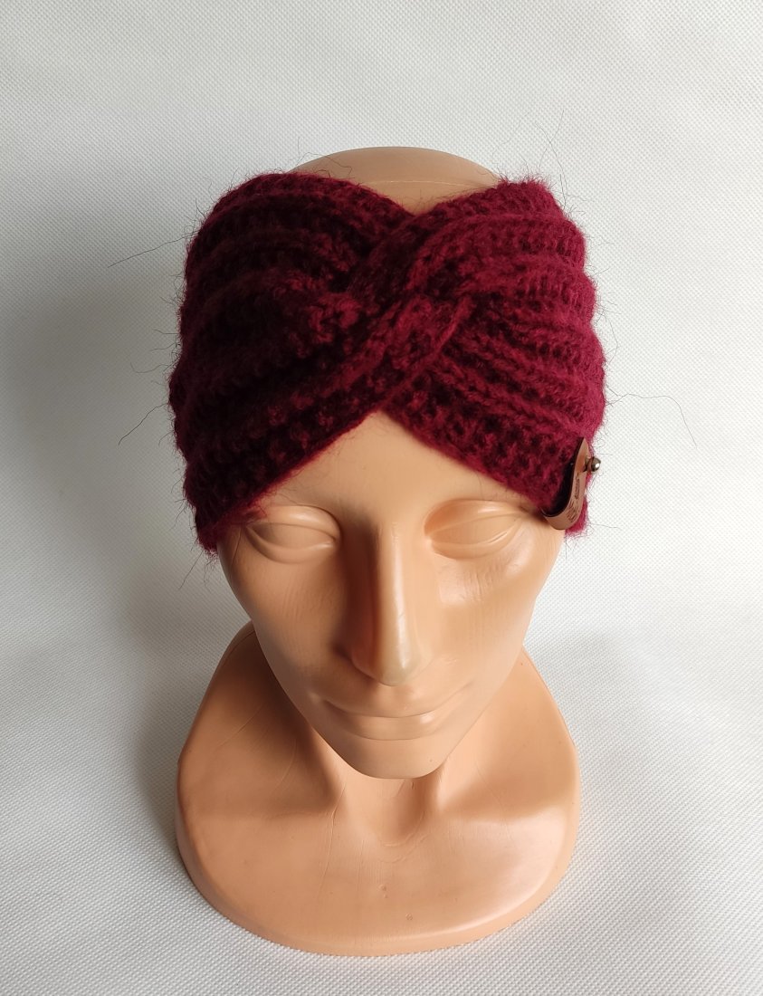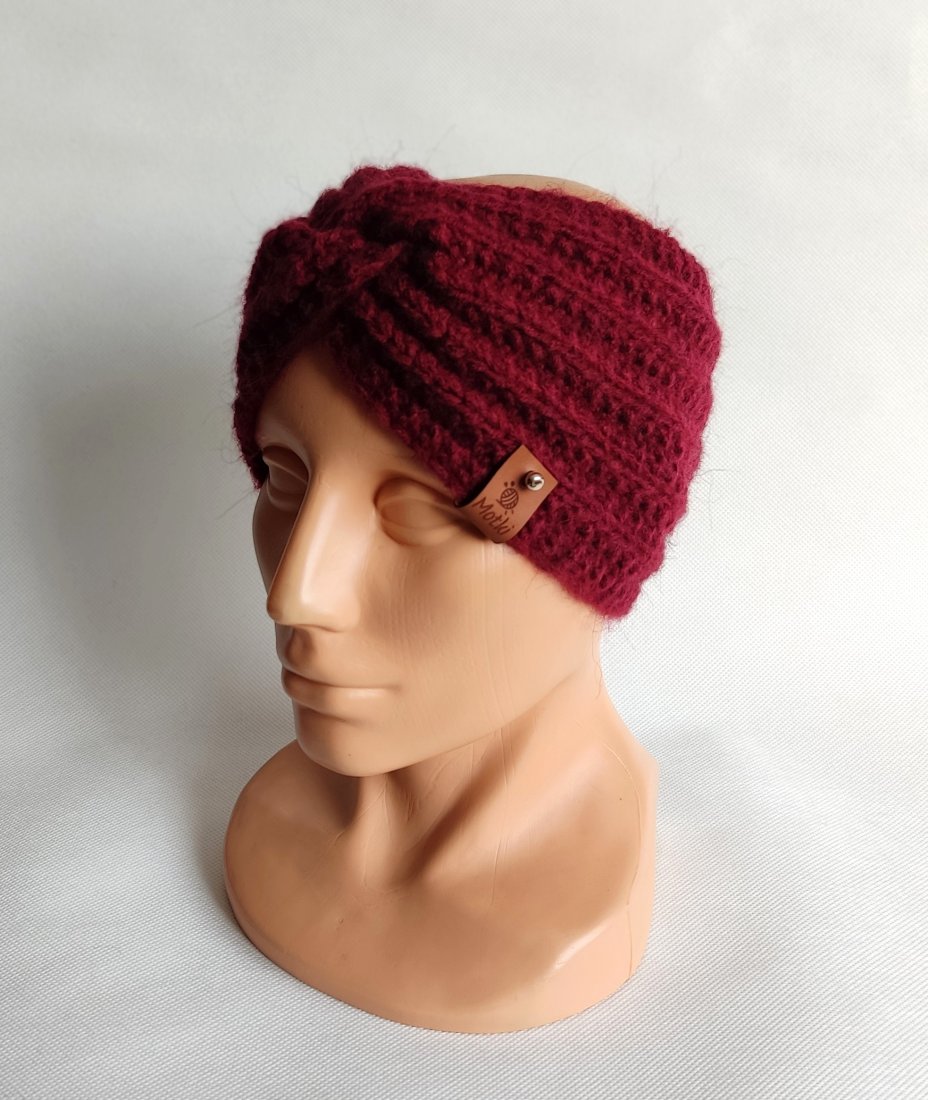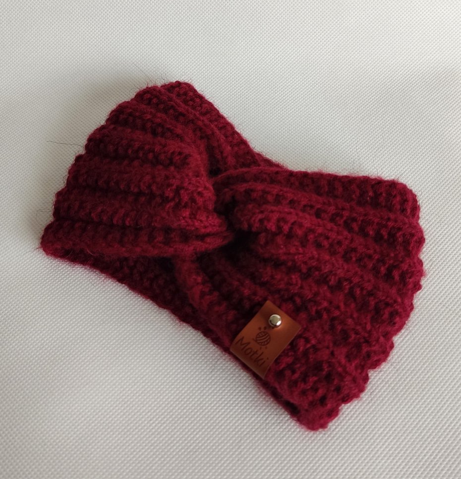 Opaska ręcznie robiona na drutach.