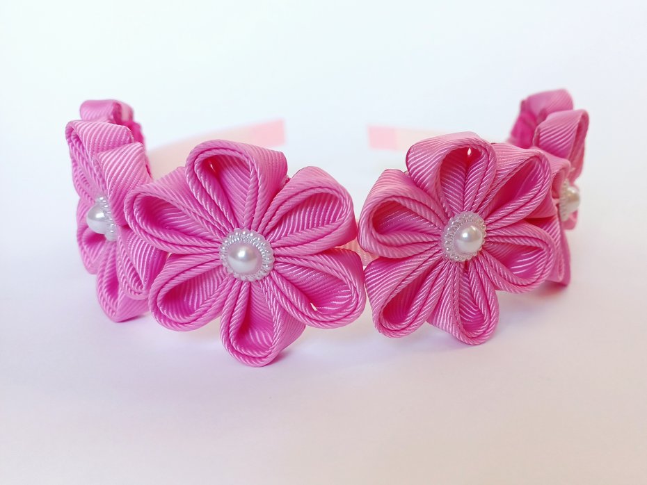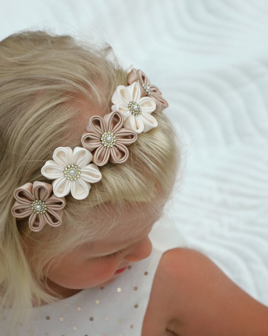 Urocza opaska na włosy dla małych księżniczek, ale również dla dorosłych, którzy chcą się poczuć wyjątkowo. Kwiaty na opasce wykonuję z tasiemek tradycyjną japońską techniką tsumami, kwiaty były częścią ozdobnych szpilek - kanzashi.