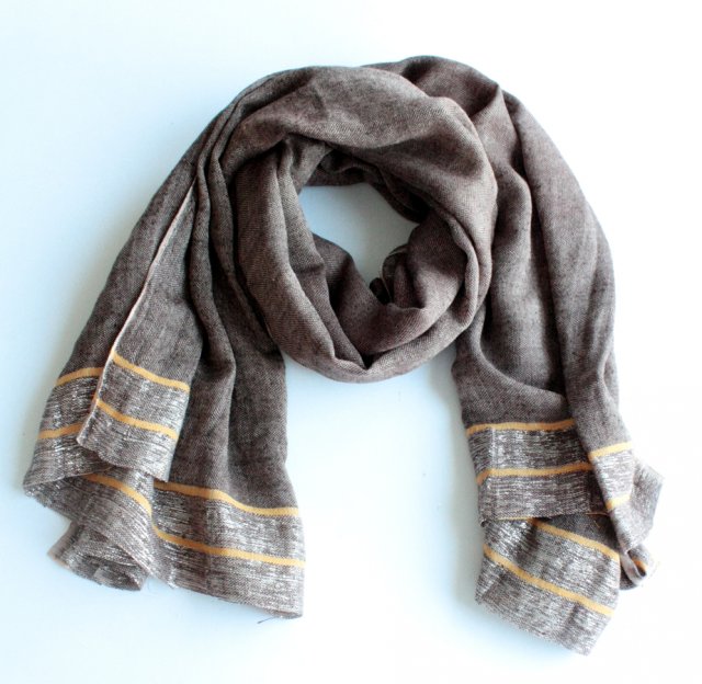 Miękki, niezwykle miły w dotyku szal, na brzegach przetykany srebrną nitką.