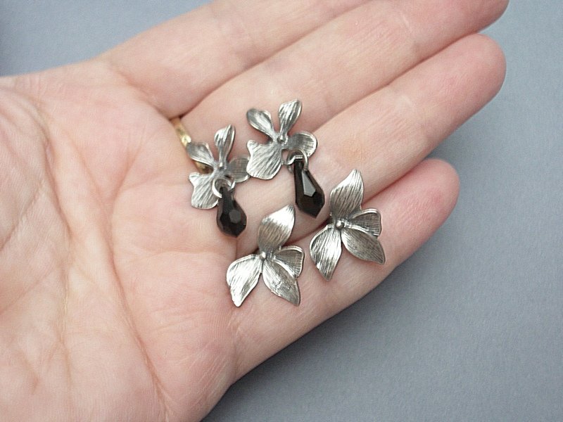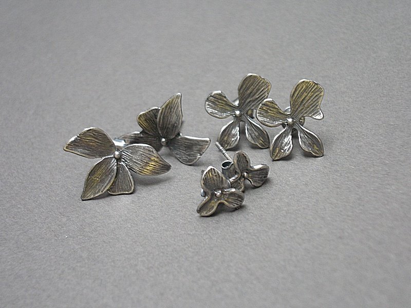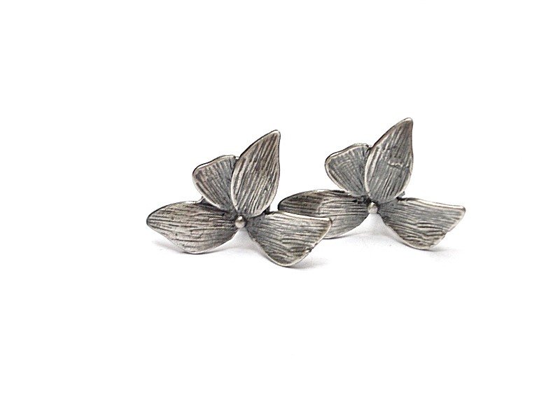 Kolczyki wykonane ze srebra [pr. 925]. Kwiatki [20mm x 13mm]. Całość oksydowana i przetarta. Biżuteria ozdobnie zapakowana.
