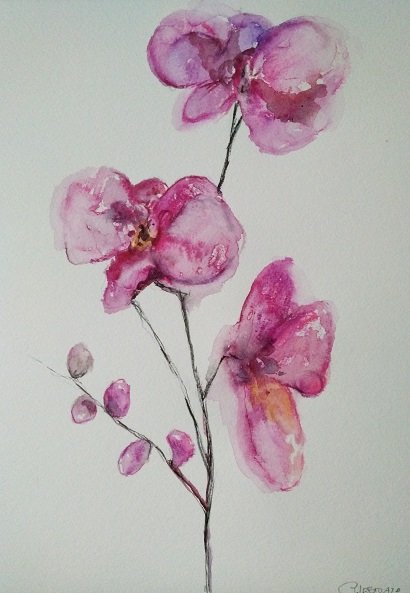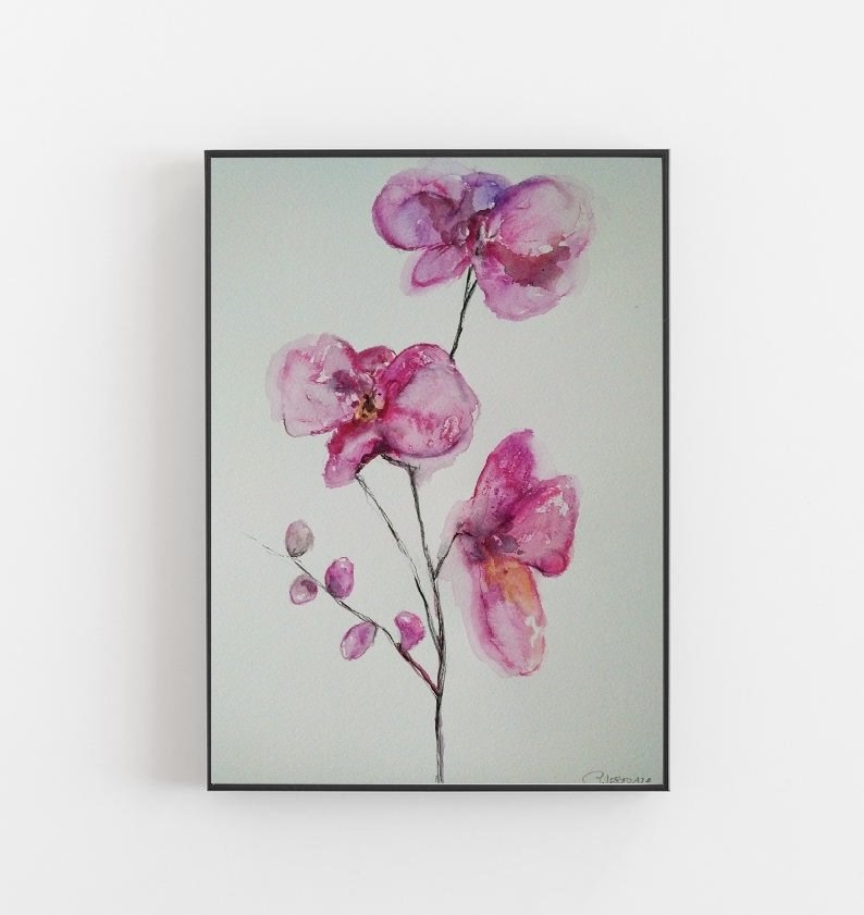 Praca wykonana farbą akwarelową na papierze akwarelowym 300g/m2, format A4. Przedstawiona jest w przykładowej ramie. Zapraszam :)