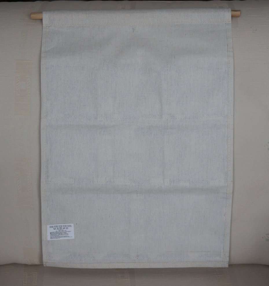 Tekstylny, wiszący organizer z kieszeniami w szarym kolorze z białymi obłoczkami. Posiada 8 przegródek na różnego rodzaju akcesoria i drobiazgi. Przedmiot nowy. Stan bardzo dobry.