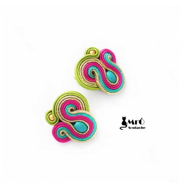 Kolczyki wykonane metodą haftu sutasz (soutache).