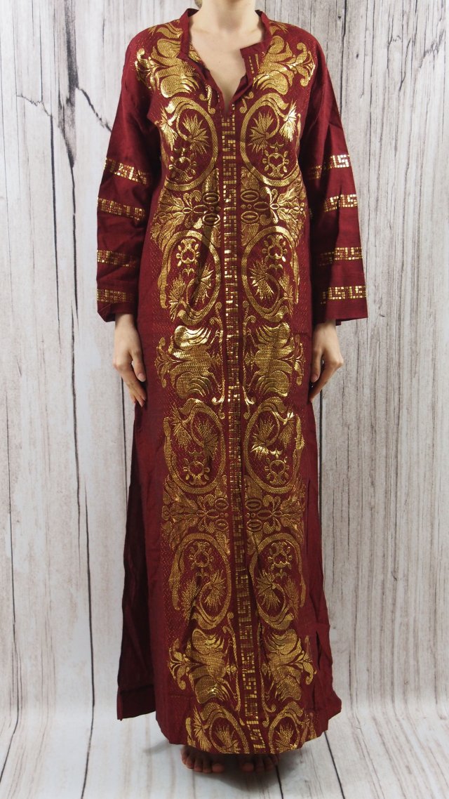 Śliczna tunika w orientalnym stylu. Ze złotymi zdobieniami. Z płótna bawełnianego. Produkcji greckiej.