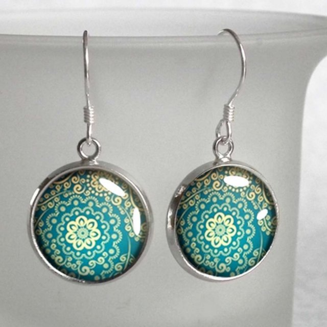Delikatne, śliczne kolczyki wiszące z oryginalną grafiką,zatopioną pod wypukłym szkiełkiem i oprawioną w hipoalergiczną bazę w kolorze srebra. Grafika jest najwyższej jakości, wyraźna i nasycona. Bigle otwarte ze srebra próby 0,925. Oryginalne kaboszony wykonane ręcznie według mojego projektu i przeze mnie, z dbałością o każdy detal.