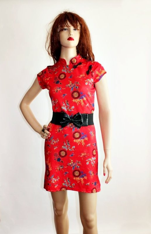 Sukienka orientalna marki Dolce Elavir w rozmiarze 36. Na soczystym czerwonym tle urocze wzory orientu. Stan bardzo dobry