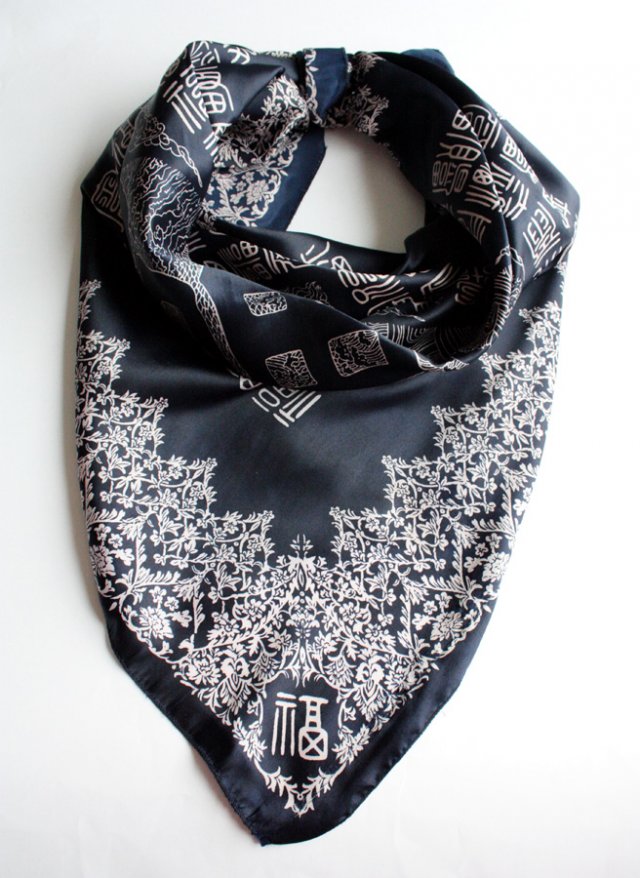 Wielka, granatowa chusta w orientalne wzory.