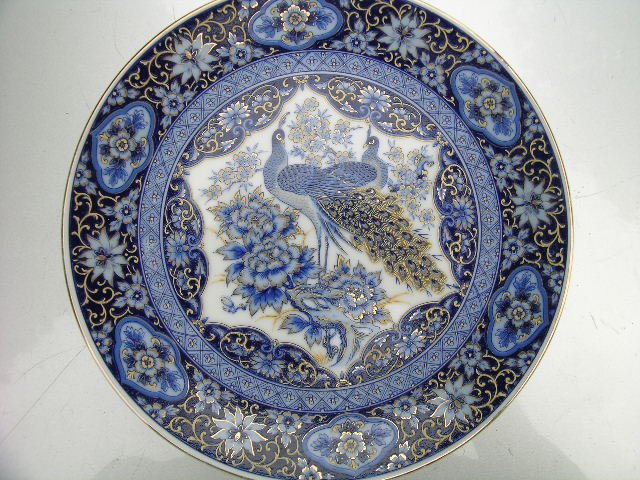 Porcelanowy Orientalny Talerzyk fantastycznie zdobiony. Sygnowany. Zniuansowanie błękitów,kobaltów suto okraszone precyzyjnymi kreseczkami złota. Tło białe. Wzór czytany pod dłonią nieco wypukły. Wykończenie satynowo-błysczące. Bardzo piękny ;)