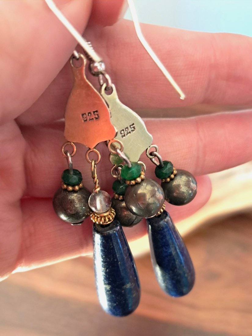 Duże krople lapis lazuli inkrustowanego pirytem: 30 x 10 mm
