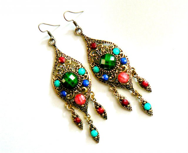 Piękne kolczyki z metalu w złotym kolorze z kolorowymi oczkami. Na pewno nie pozostaną niezauważone.