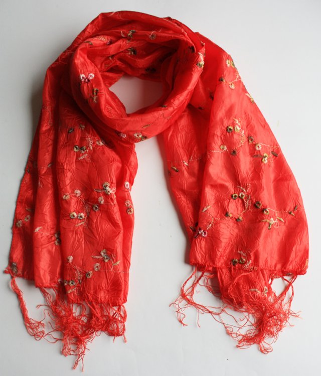 Haftowany szal w orientalnym stylu z jedwabiem.