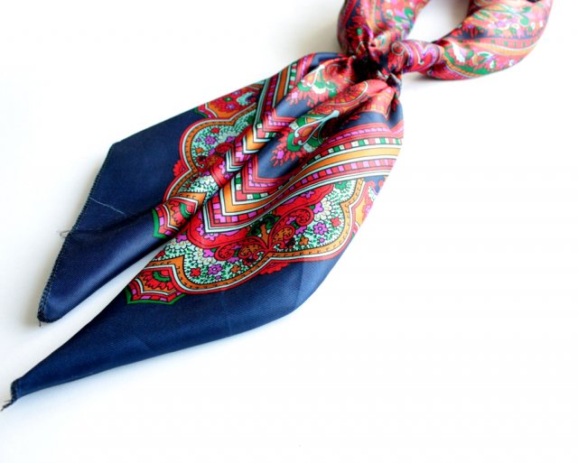 Duża chusta w orientalne wzory. Materiał to w mojej ocenie jedwab naturalny lub syntetyczny.