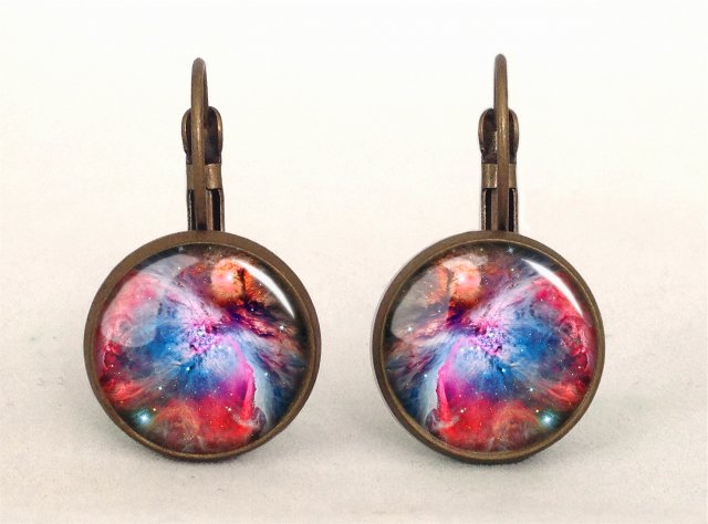Ręcznie robione kolczyki wiszące z wysokiej jakości grafiką pokrytą wypukłym, powiększającym szkiełkiem.