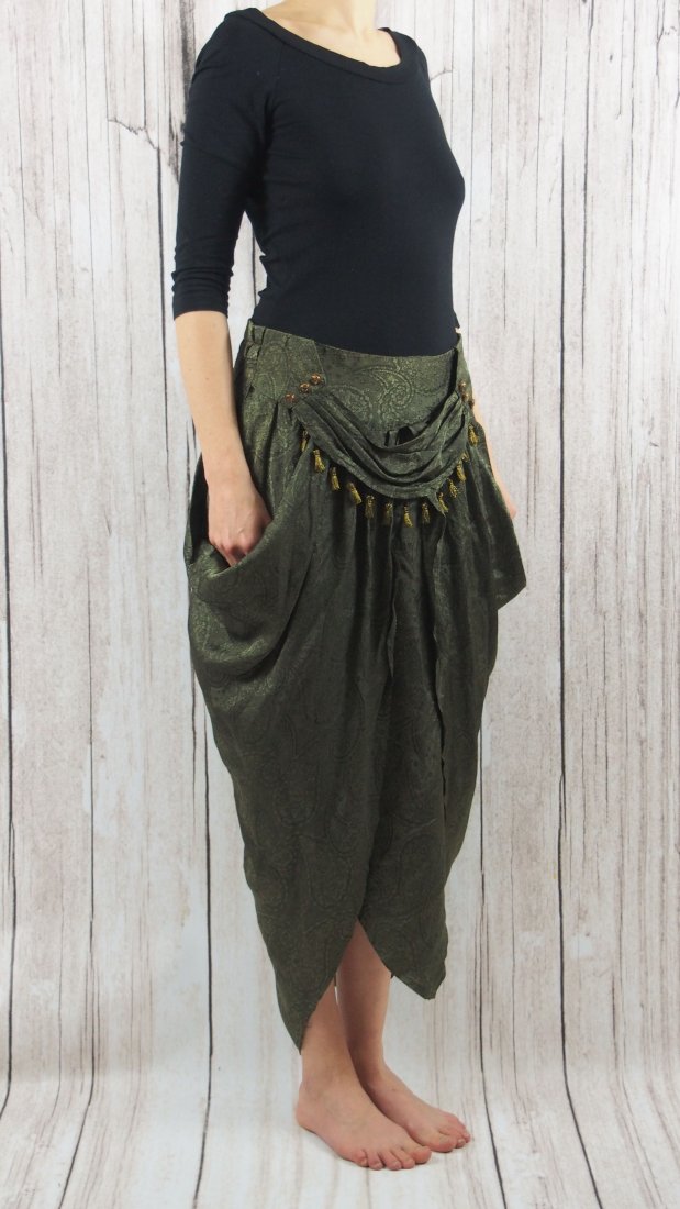 Francuska nietuzinkowa spódnica o wyjątkowym kroju. Całość w etniczne wzorki. Z wiskozy i aceatatu po połowie. Wyprodukowano w paryskiej manufakturze.