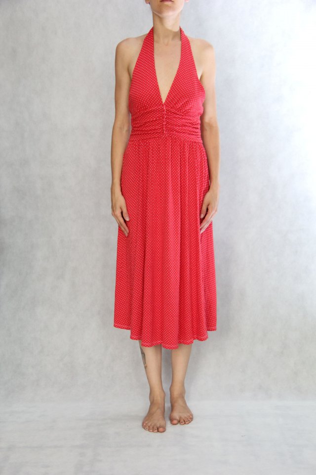 Sukienka firmy Orsay stylizowana na pin-up/retro. Zakładana na szyje. W kropki.