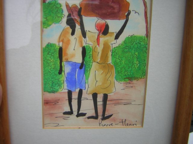 Oryginał ręcznie malowany obrazek. Farby wodne i delikatna, cienka, czarna kreska. Sygnowany PIERRE-HENRI. Doskonałe ujęcie tematu. ...trochę Afryki, nieco symboliki, szczypta refleksji i poczucia humoru. Kolory żywe, radosne, miłe dla oka. Graficzne, symboliczne. ...Ramka drewniana w naturalnym kolorze drewna.. Szybka, passpartou dobrze dobrane do tła. Obrazek Gotowy do powieszenia.