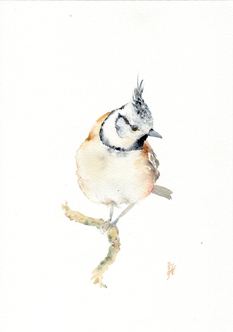 5.  > Oryginalna akwarela. Sikora czubatka (nr 7099141)