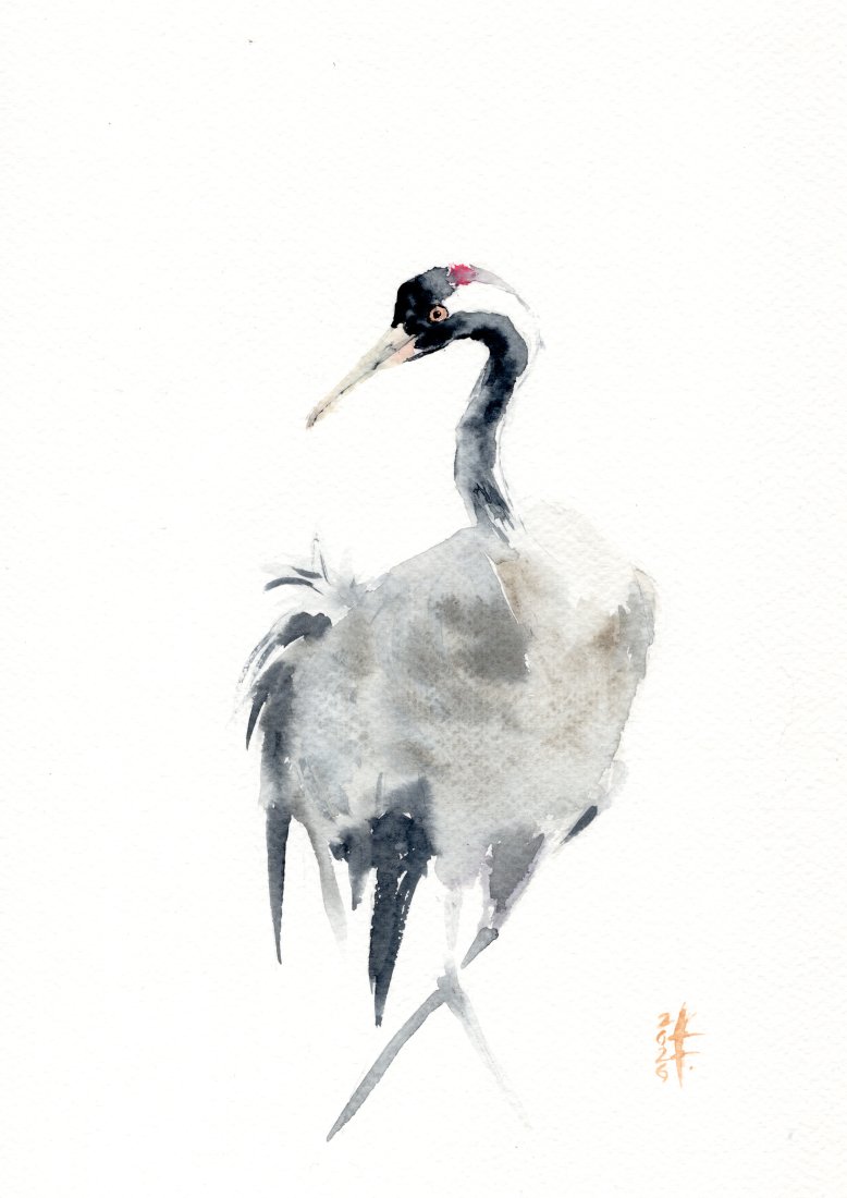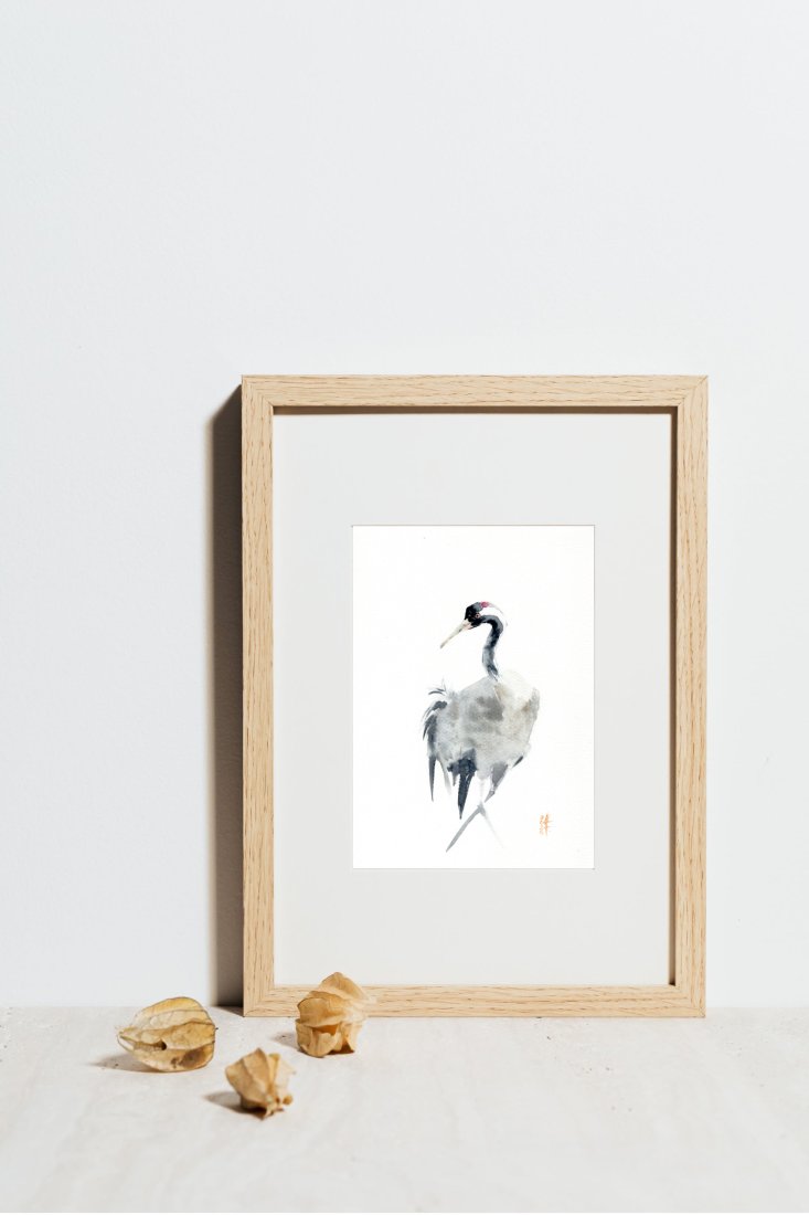 ORYGINALNA AKWARELA. ŻURAW