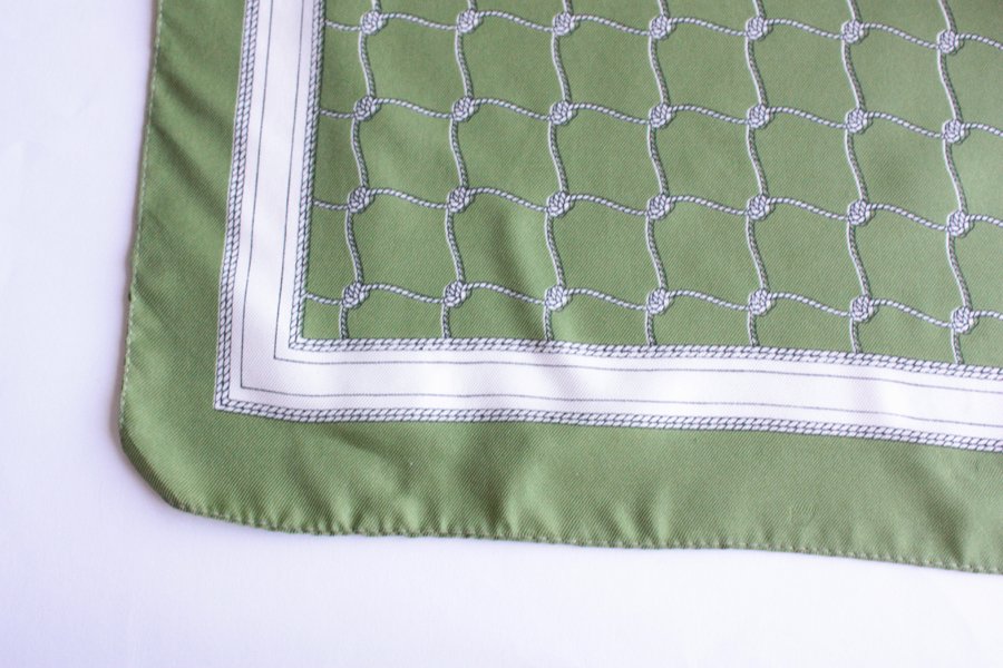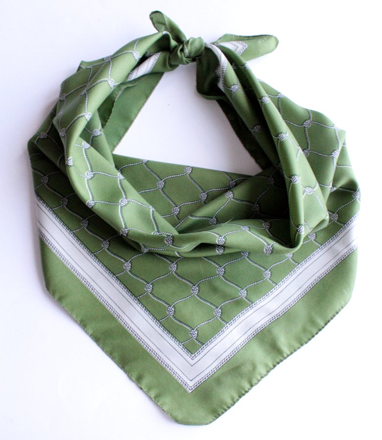 Chusta w stonowanym odcieniu zieleni, w ciekawe wzory przypominające węzełki.