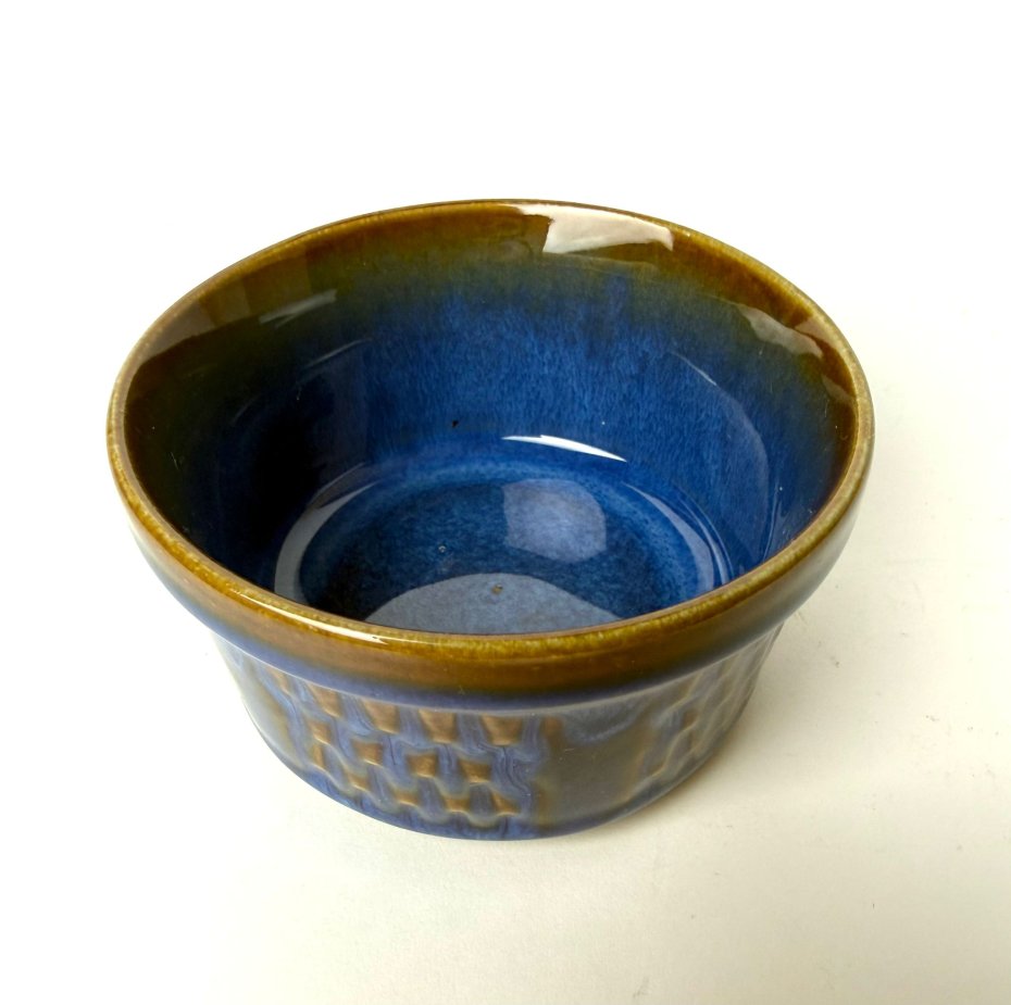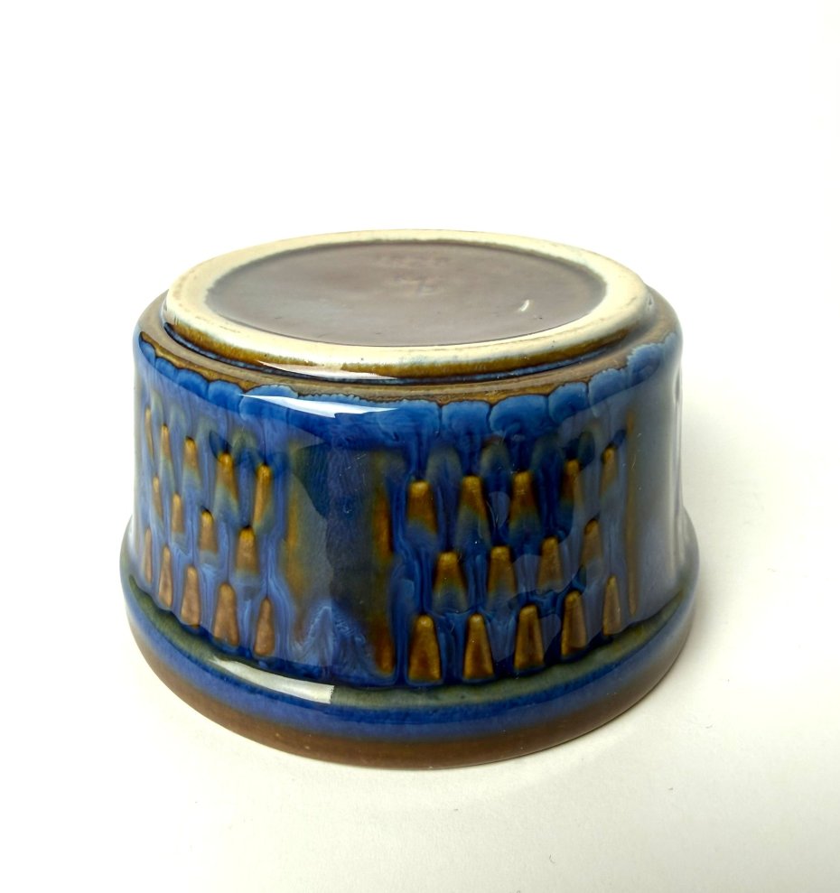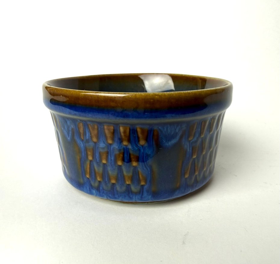 Seria "Blue Granit" to ikona designu Mid-Century Modern. Cukiernica o numerze 1828 jest poszukiwanym elementem uzupełniającym kolekcję, wyróżniającym się unikatowym procesem szkliwienia – nie ma dwóch identycznych egzemplarzy pod względem rozłożenia barw.