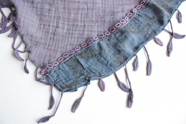 Oryginalna, trójkątna chusta wykonana z bawełny o luźnym splocie.