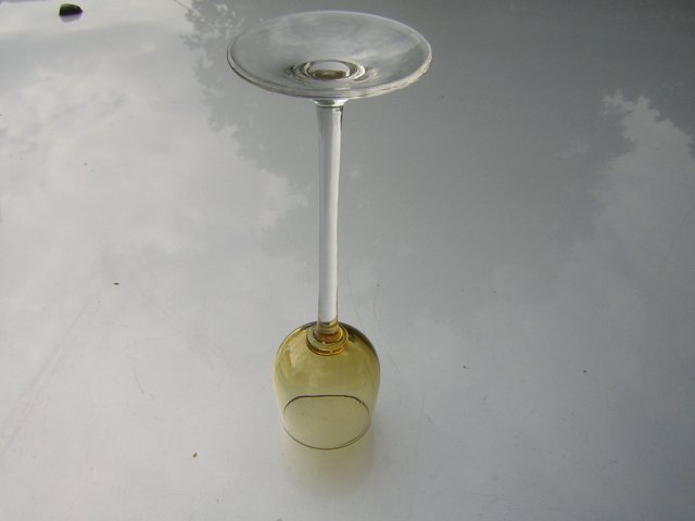 Oryginalny miodowy kieliszek. Doskonały na nalewki, likiery. Ciekawy kształt. Na wysokiej przezroczystej nodze -ciepły miodowy kolor . Dla singla,lub na początek ciekawej kolekcji