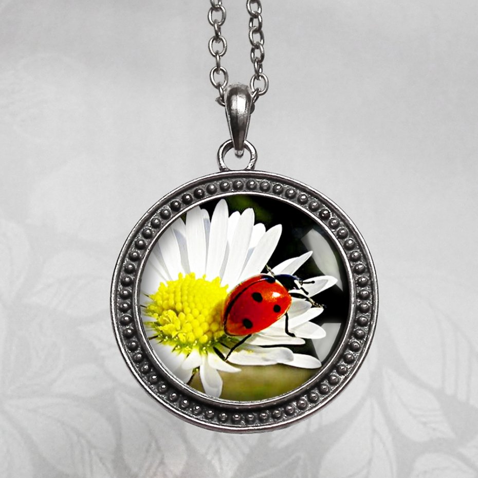 Naszyjnik ręcznie robiony, z oryginalną grafiką artystyczną, zatopioną pod wypukłym szkiełkiem z efektem głębi, w oprawie w kolorze antycznego srebra. Wisior z grafiką zawieszony na łańcuszku z zapięciem w kolorze srebra. Grafika jest najwyższej jakości, wyraźna i nasycona, wywołana na wysokiej klasy papierze fotograficznym. Biżuteria hipoalergiczna.