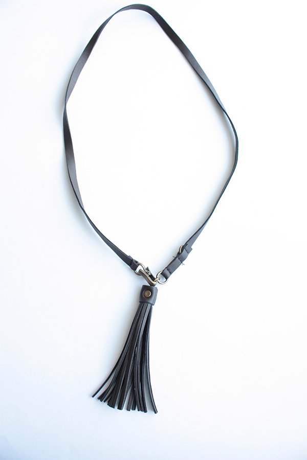 Oryginalny, wąski pasek o efektownym wykończeniu i nietypowym zapięciu. Wykonany prawdopodobnie ze skóry ekologicznej.