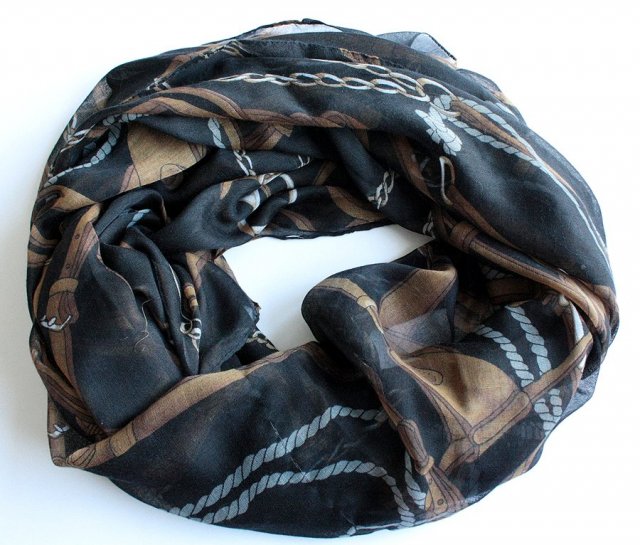 Duży, stonowany szal w ciekawe wzory. Wykonany prawdopodobnie z wiskozy.