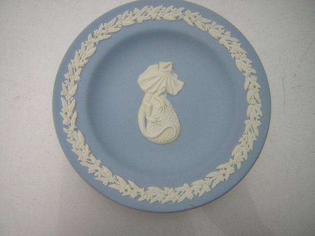 Kolekcjonerski talerz z biskwitowej szlachetnej porcelany angielskiej, sygnowany jakością Wedgwood.Sygnowany . Porcelana matowa, niezwykle przyjemna, z fakturowymi białymi wzorami. Tu inaczej . ..nie antyczne wzory, tylko zwierz na jajku....kameleon? Chyba....niespotykany, kolekcjonerski .