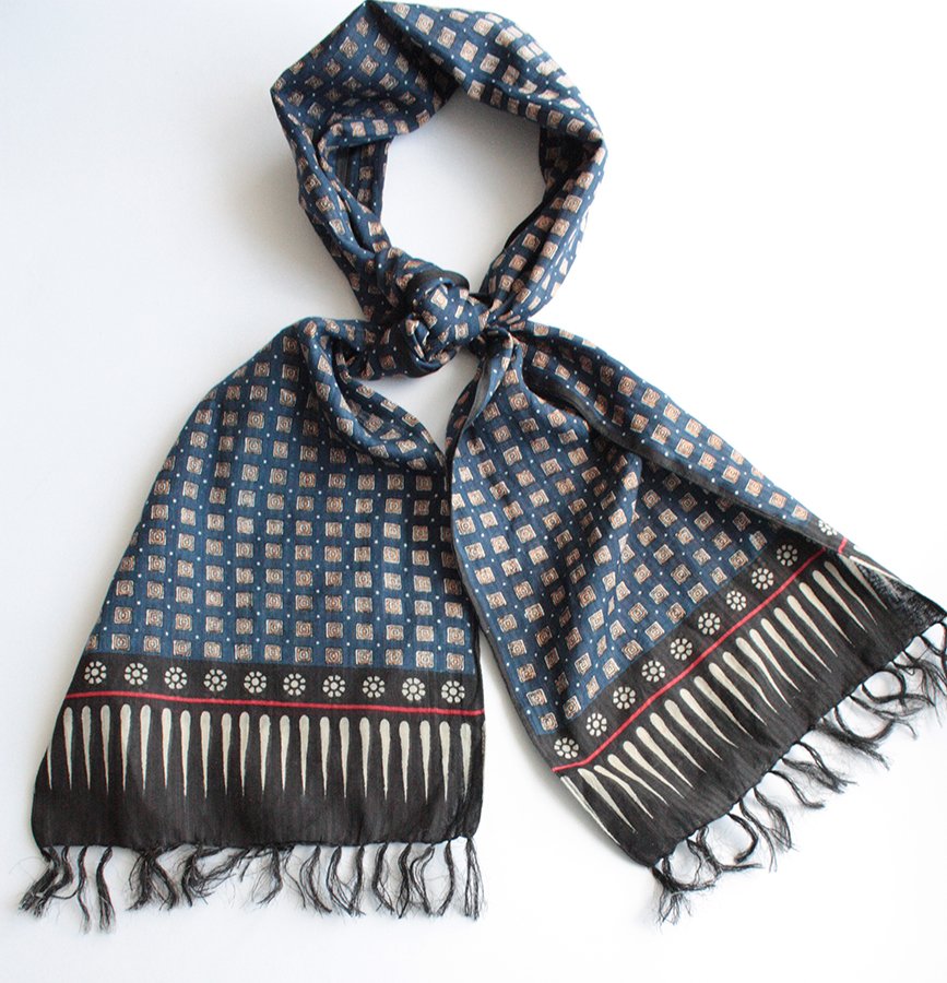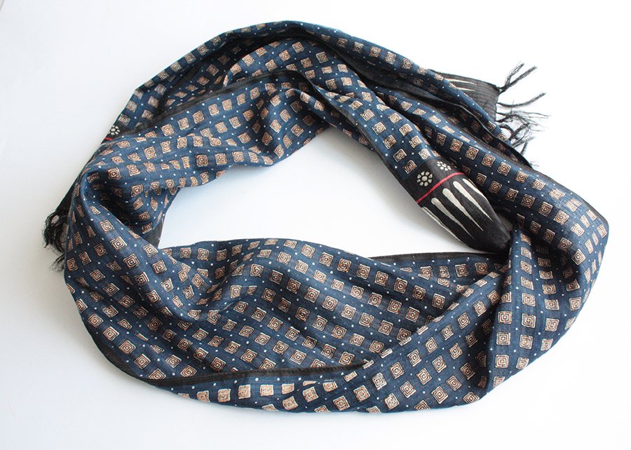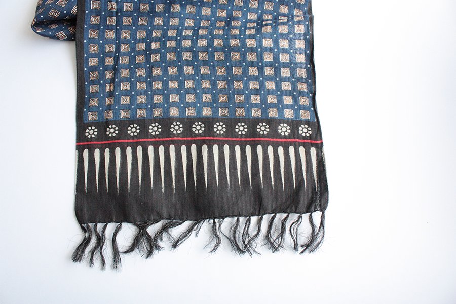 Wzorzysty szal wykonany prawdopodobnie z bawełny lub wiskozy.