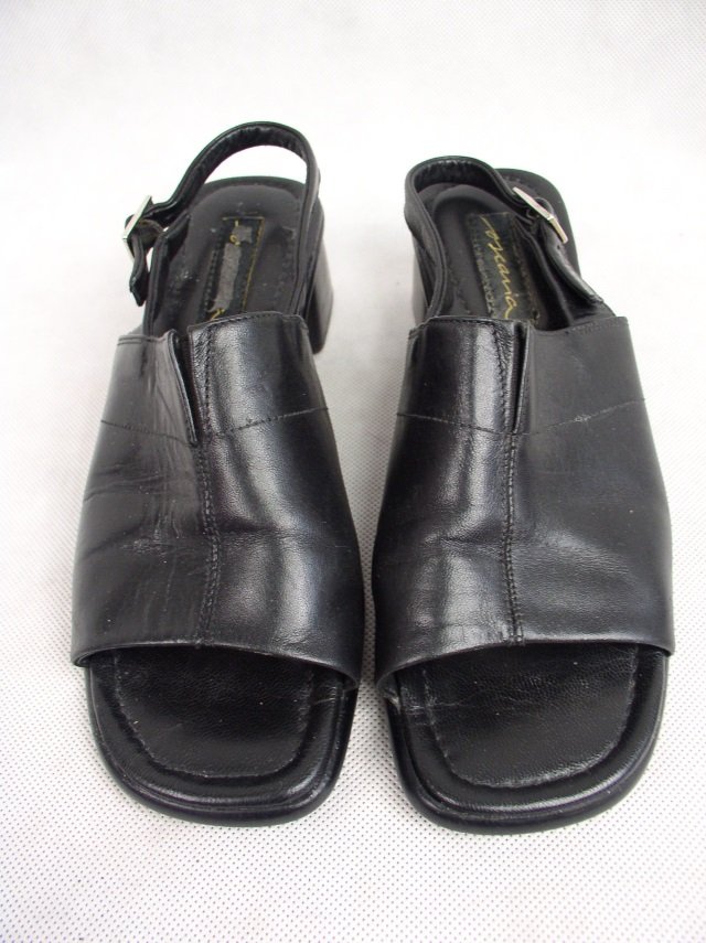 Sandałki letnie firmy oscaria.Rozmiar 40.Uszyte ze skóry naturalnej.Wkładka miękka ze skóry naturalnej.Obcas szeroki,stabilny.Spód gumowy.Pasek zapinany na kostce.Stan ogólny bardzo dobry-.Długość wkładki 26 cm.
