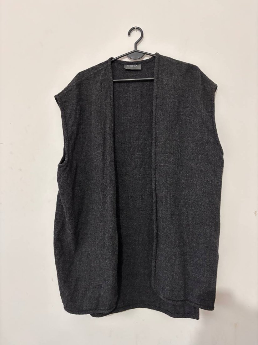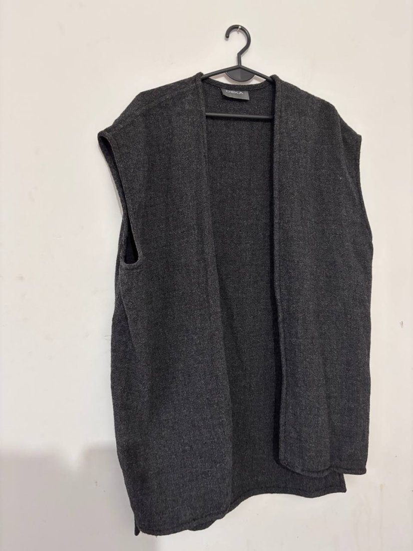 kamizelka wełniana, kamizelka damska, kamizelka oversize, kamizelka grafitowa, oska kamizelka, moda minimalistyczna, styl skandynawski, basic, klasyczna kamizelka, elegancka kamizelka, kamizelka premium, kamizelka na sweter, kamizelka bez zapięcia, kamizelka ciepła, kamizelka jesienna, kamizelka zimowa, kamizelka szara, wełna, styl vintage, niemiecka marka, luksusowa odzież, kamizelka długa, moda damska, kapsułowa szafa, slow fashion, ubrania premium, kamizelka OSKA, minimalistyczna odzież, klasyka, ponadczasowa