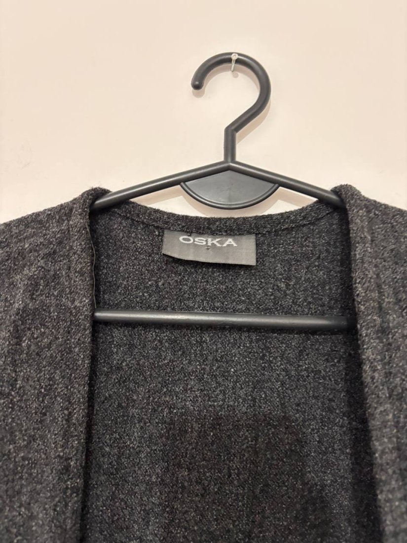 vest, wool vest, women vest, oversized vest, charcoal vest, OSKA vest, minimalist fashion, scandi style, premium clothing, long vest, open vest, warm vest, layering vest, fall fashion, winter fashion, grey vest, wool blend, sustainable fashion, capsule wardrobe, designer clothing, german brand, knitted vest, everyday wear, timeless style, modern vest, relaxed fit, loose vest, textured fabric, elegant vest, quality clothing
