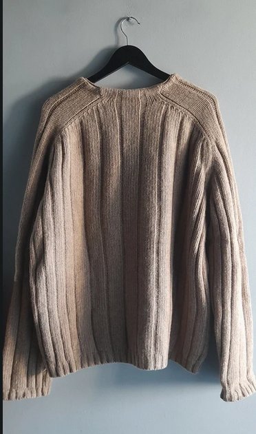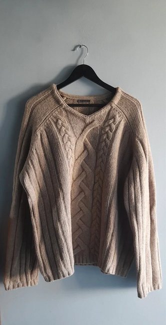 Mięsisty, miękki, ciepły oversizowy sweter pudełkowy 70x70 bez naciągania, przedłużony rękaw, stan idealny unisex