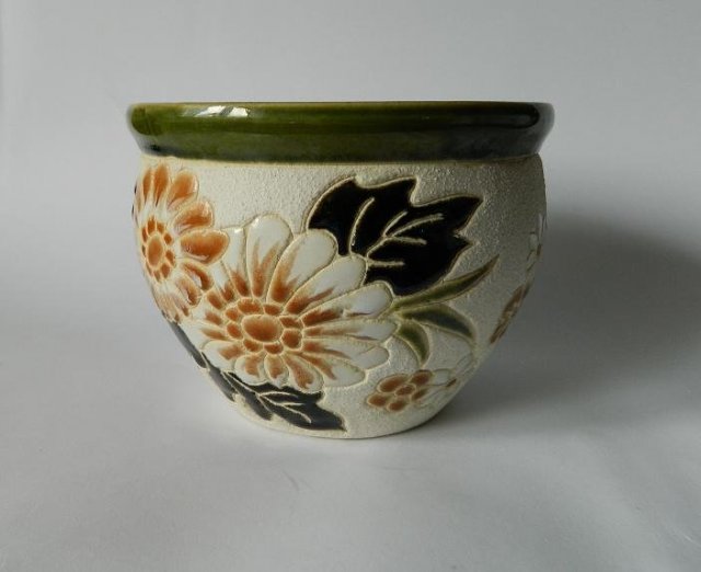 Osłona na doniczkę, motyw po obu stronach taki sam. Używana, stan foto.