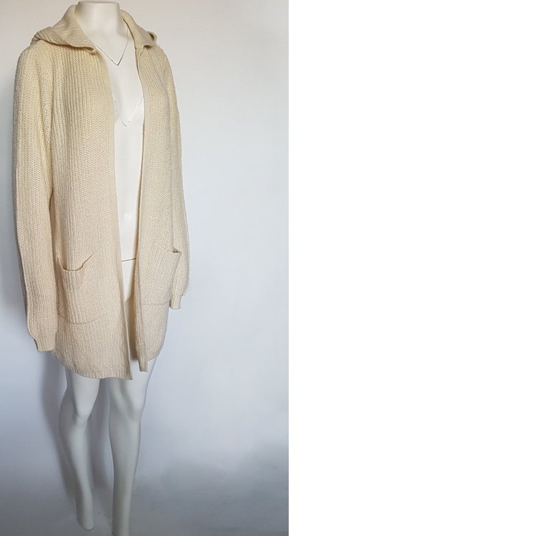 4.  > Otulający sweter przed kolano z kieszeniami i kapturem ecru R 40 L Hu56 (nr 7107010)