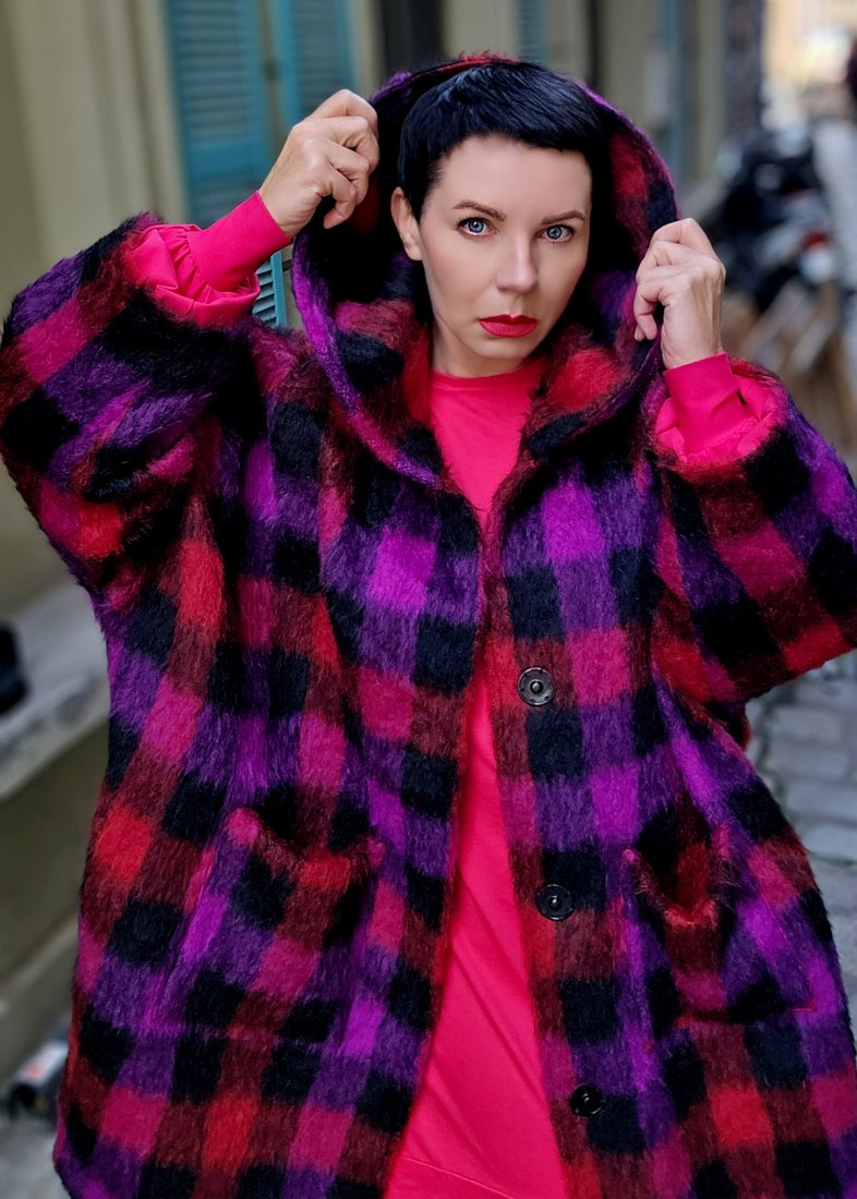 Tagi: #moher, #płaszcz w kratę, #płaszcz z kapturem, #wełniany płaszcz