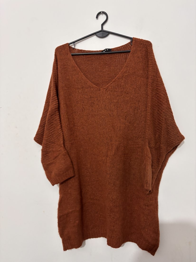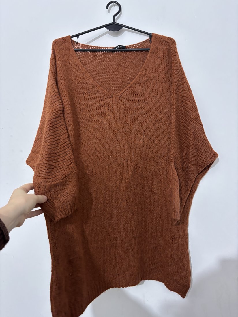 #sweater #knitsweater #oversizesweater #vnecksweater #rustsweater #brownknit #fallfashion #winterfashion #warmknit #softknit #loosesweater #batwingsleeve #womensweater #oversizestyle #casualstyle #minimalstyle #basicwear #cosyknit #cozysweater #autumnstyle #winterstyle #comfortablewear #everydayfashion #knitwear #softsweater #fashion #womensclothing #relaxedfit #tunicstyle #warmwear