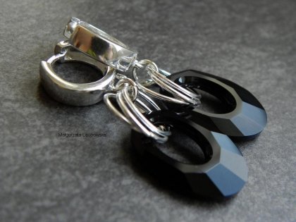Efektowne kolczyki wykonane ze srebra próby 925 oraz nowych kryształów Swarovskiego w formie owala wielkości 20 mm, zawieszone na szerokich biglach typu kajdanki. Długość kolczyków wynosi 4,3 cm.