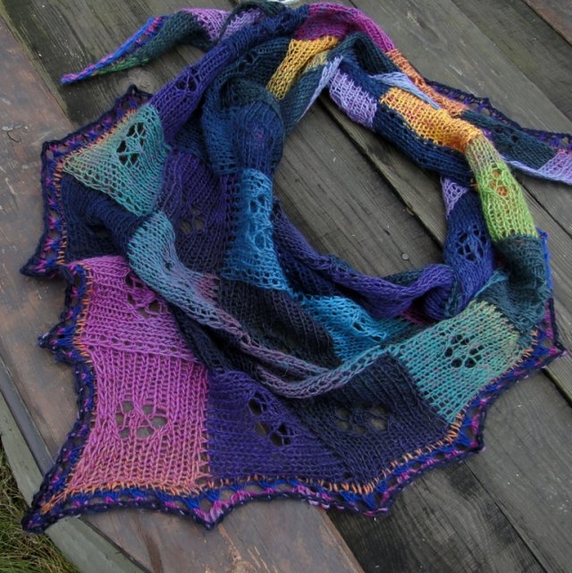 Niebanalna chusta, delikatna i zwiewna,która może służyć cały rok: jako ochrona przed chłodem lub element stylizacji. Wykonana ręcznie na drutach . Niestety zdjęcia nie oddają delikatności, miękkości i pięknych niuansów kolorystycznych. Wymiary: 195 (najdłuższy bok) x 82 (wysokość trójkąta) cm. Skład: 75% wełna, 25% poliamid.