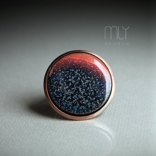 Efektowny pierścień z ceramicznym oczkiem, ręcznie wykonanym z gliny kamionkowej, poszkliwionym mieszanką czerwonych i zielonych szkliw z efektem plamek.Obrączka regulowana w kolorze miedzi, średnica oczka ok 27mm. Polecam. Termin realizacji zamówienia to 1-2 dni.