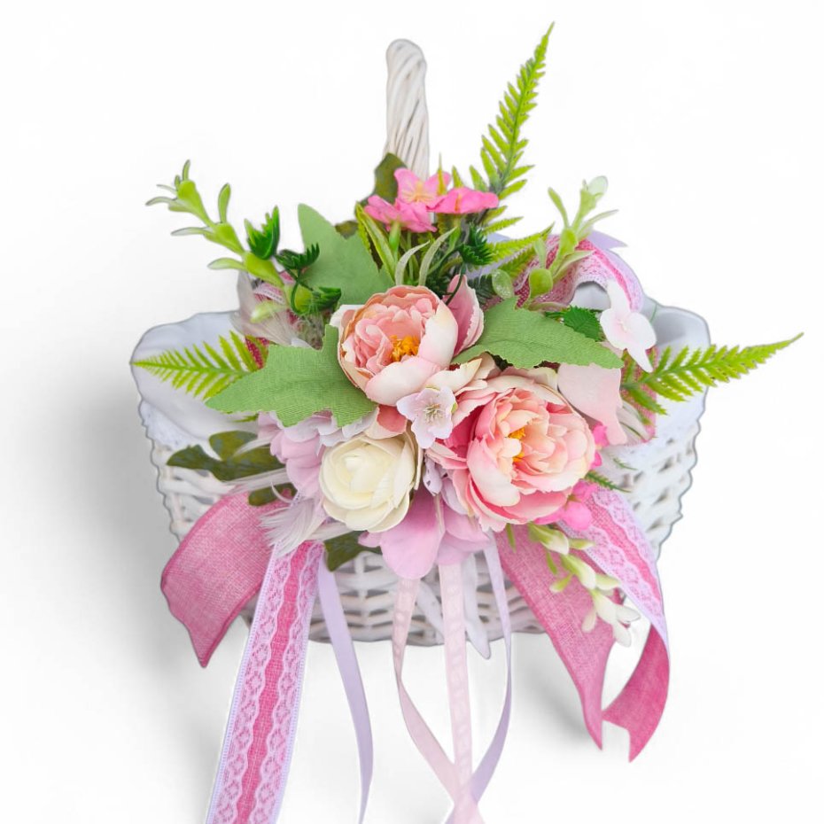 Dekorację należy przywiązać do rączki koszyka. Rozmiar ok 18/18cm (nie licząc zwisających wstążek)