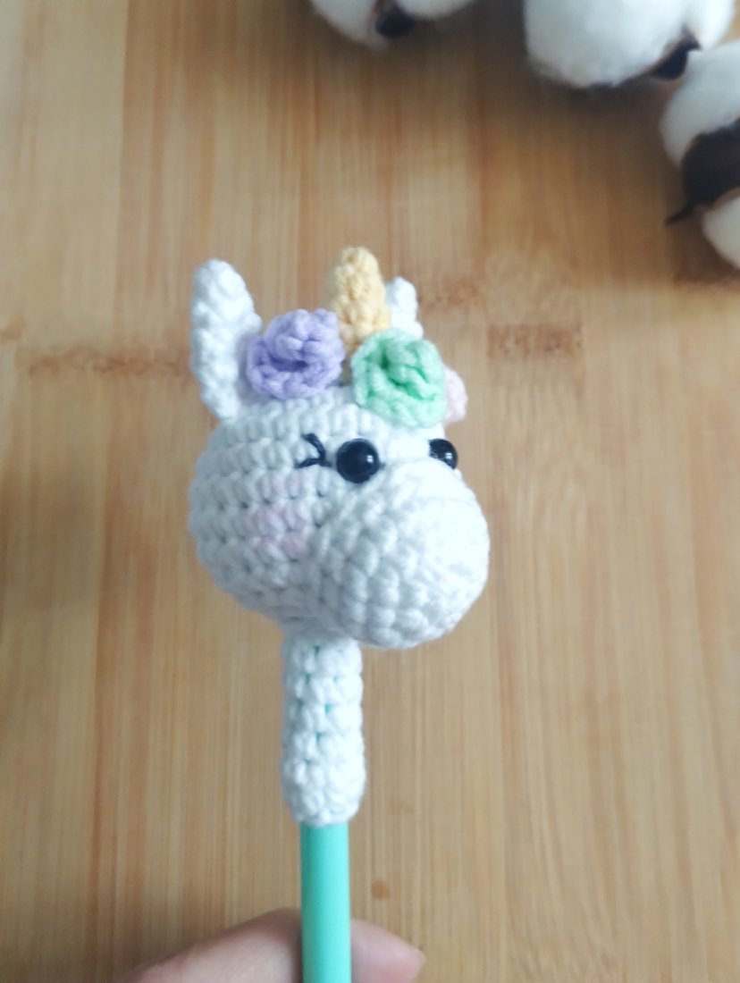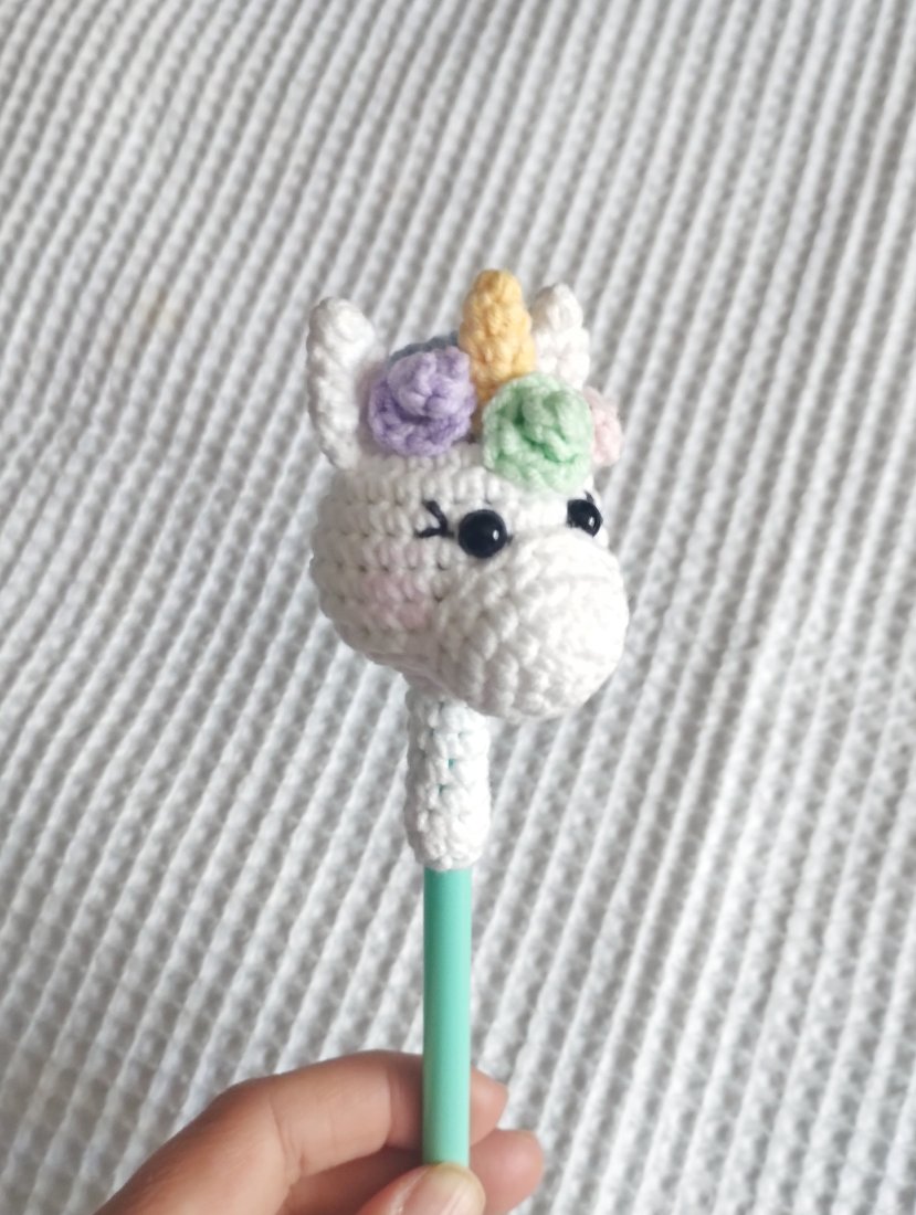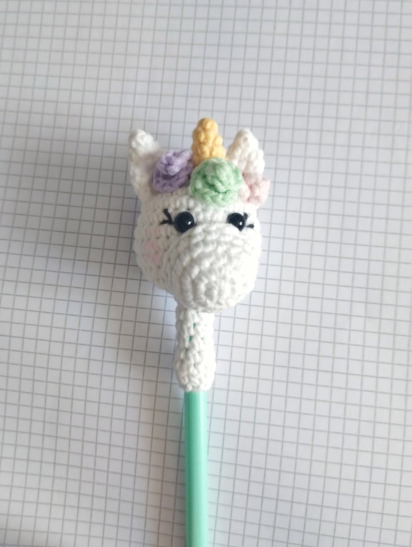 Tagi: #jednorożec dla rysownika, #jednorożec do nauki pisania, #ozdoba na ołówek jednorożec, #szydełkowy jednorożec