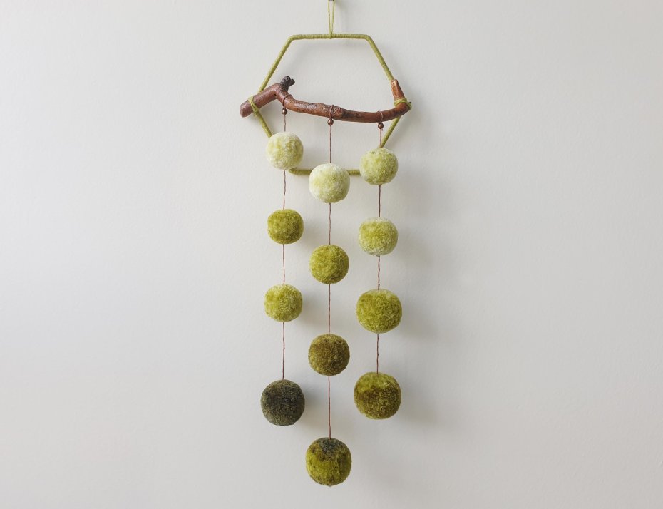 Wprowadź odrobinę świeżości i naturalnej harmonii do swojego wnętrza dzięki ręcznie wykonanej dekoracji ściennej z miękkich pomponów w odcieniach zieleni. Mała, kompaktowa forma sprawia, że jest idealna do każdego kąta – na ścianę w salonie, przy biurku czy w sypialni. Różne odcienie zieleni tworzą przyjemną dla oka kompozycję, która dodaje wnętrzu lekkości, spokoju i pozytywnej energii.