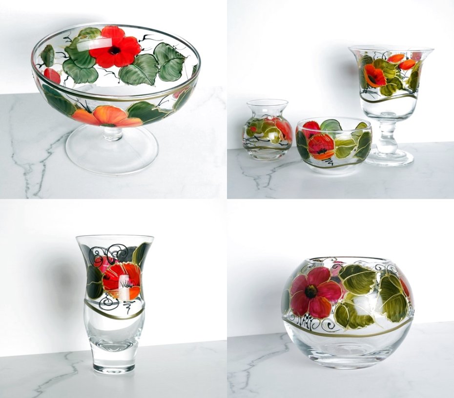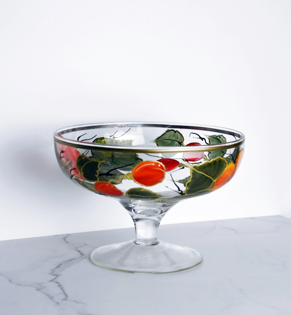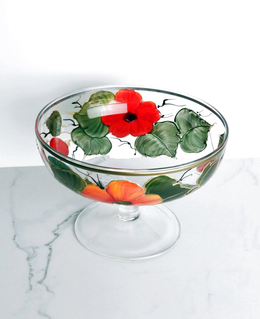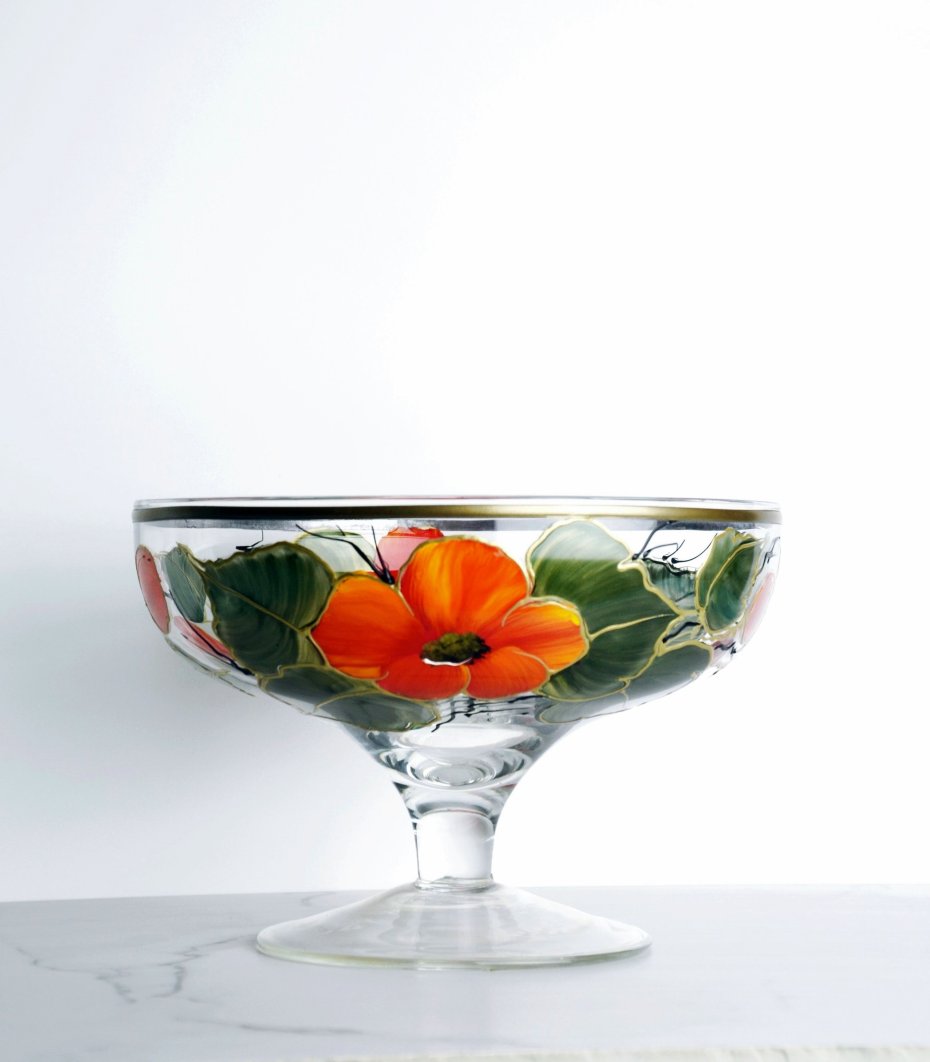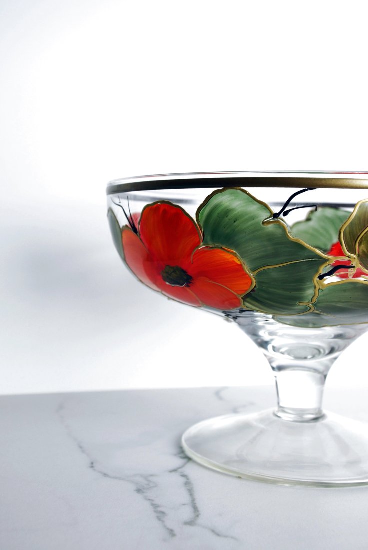 Pięknie zdobiona, ręcznie malowanym motywem kwiatowym i złotymi zdobieniami.