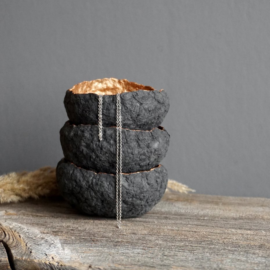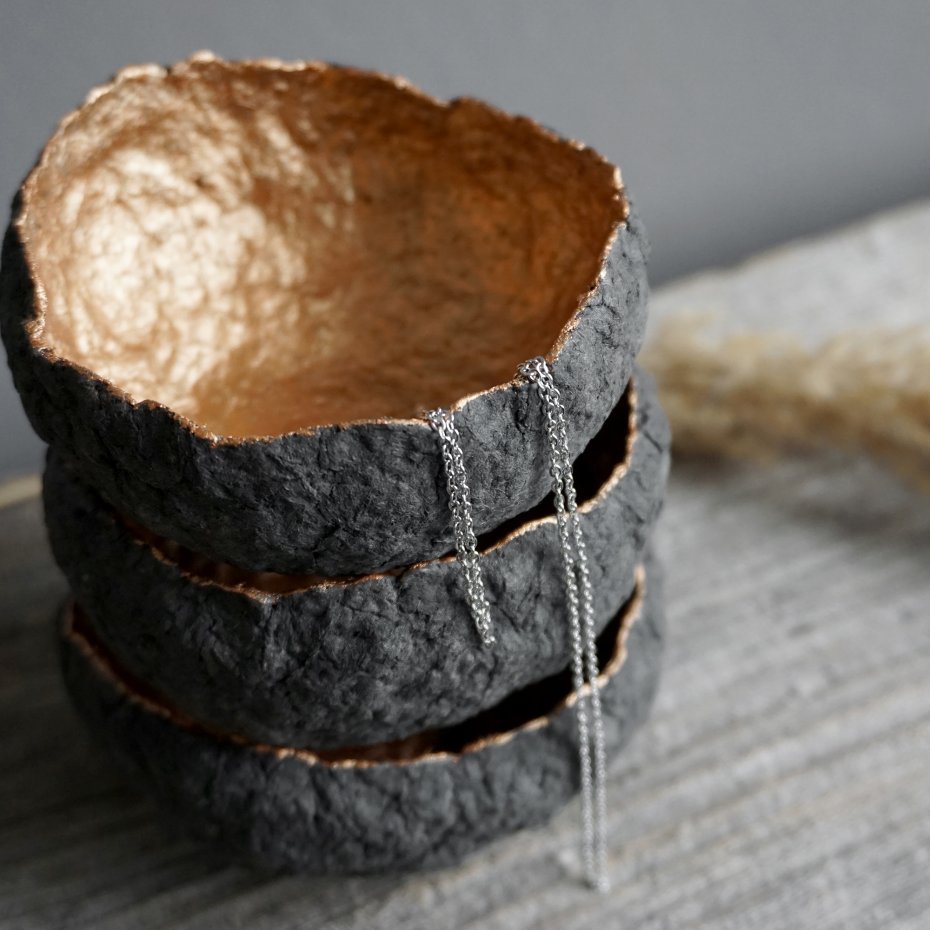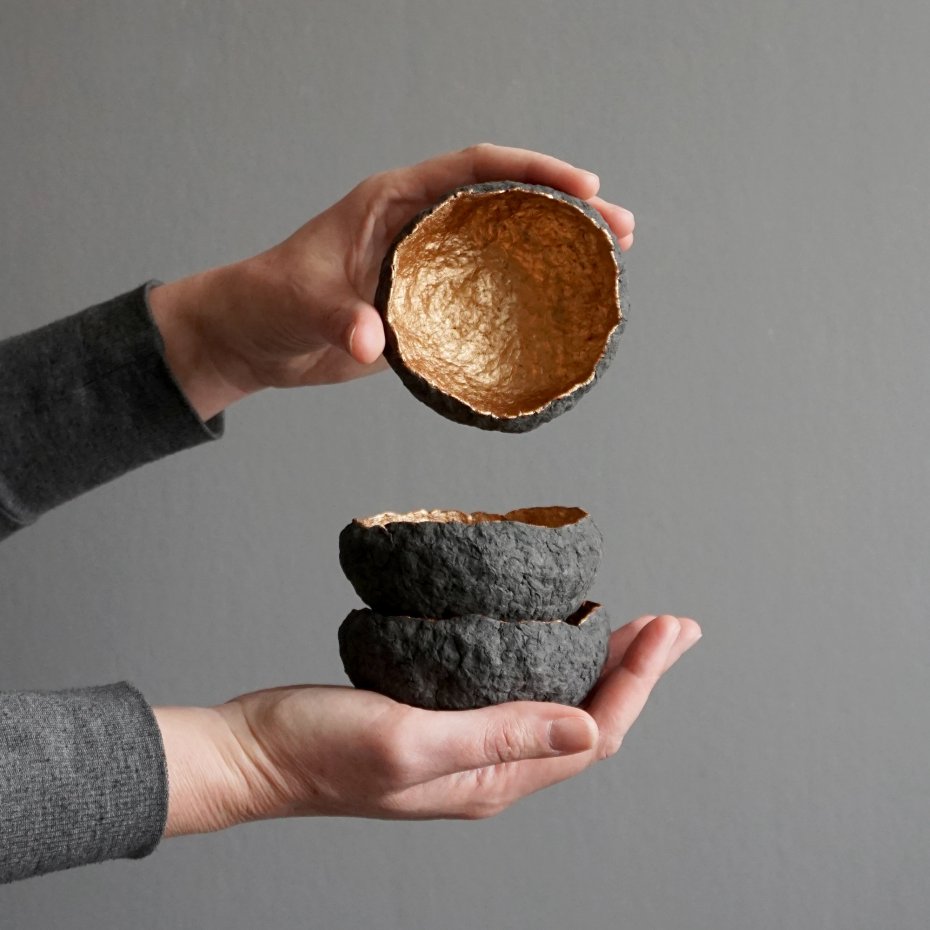 Miseczki mają surową, chropowatą powierzchnię, która tworzy się naturalnie i lekko nieregularny kształt.